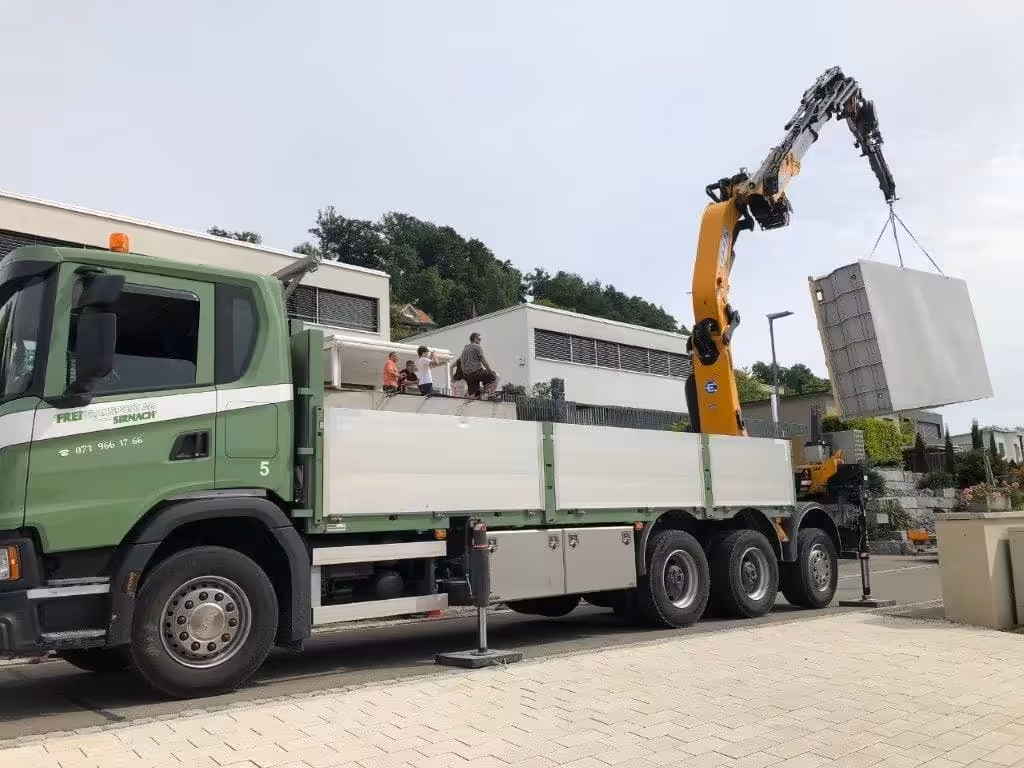 Mit Frei Transport AG Sirnach haben sie den Spezialisten an Ihrer Seite, wenn es um Mittel zur Beförderung von Gütern und Personen geht oder wenn Sie Maschinen und Services für Schwergüter benötigen. Nutzen Sie unsere vielfältigen Dienstleistungen. Ob Kranarbeit bis in 32 Metern Höhe und bis zu 1160 Kilo Gewicht, Muldenservice oder Personentransporte. Bei uns sind Sie in den richtigen Händen.