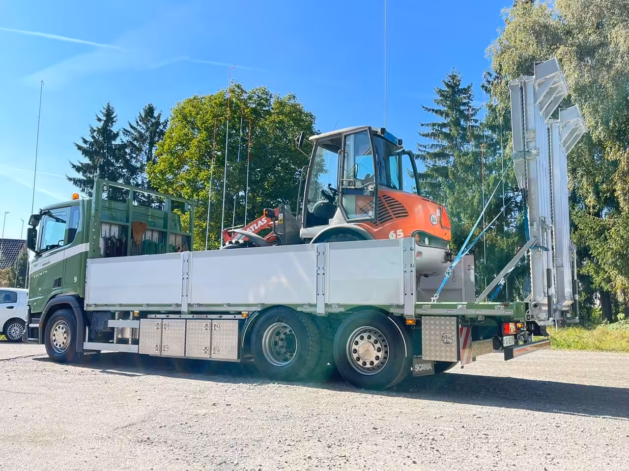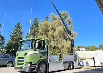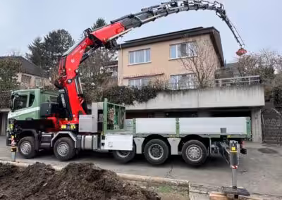 Nutzen Sie unsere Kranarbeit mit bis zu 135 mt. Ausladung 32m / 1160 kg oder 19.65m / 4080 kg. Mit dem Kranwagen und unter- schiedlichen Greifern wie z.B. Fällgreifer haben Sie zahlreiche Anwendungs- möglichkeiten.